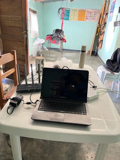 Al alba están todos despiertos, listos para la ceremonia de izado de la bandera. El mástil estaba escoltado por dos de las niñas que estudian en la escuela, pero resultaba incompleto sin la presencia de alguno de los padrinos que de tan lejos habían llegado. Izzy fue galardonado para rendir los honores al pabellón nacional. A posteriori, se dirigieron al comedor y varios de los niños se disputaban los lugares cercanos a los padrinos. Al finalizar el desayuno, el grupo comenzó con las tareas que había ido a ejecutar. En primer lugar, determinaron que la prioridad era darle nuevamente conectividad a la escuela, que se encontraba interrumpida desde hacía 4 meses por motivos que las autoridades de la escuela no habían podido determinar. Luego de varios intentos de orientar correctamente la antena y al ver fracasados todos ellos, se tomó la decisión de hacer un cambio de las partes que supusieron dañadas; el modem, router y el feed fueron cambiados por similares de una tecnología más avanzada que la que se encontraba instalada. Una vez realizado el cambio de las partes se volvió a orientar la antena y una hora después, para regocijo de todos los docentes, la escuela quedó nuevamente conectada. Para ellos la conectividad, algo tan simple para quienes vivimos a nivel del mar, resulta esencial para los largos días que permanecen en la escuela lejos de sus familias y también para realizar las tareas educativas que son parte del programa. Las lágrimas de emoción de María, la directora de la escuela, así lo demostraron; y el grupo entero entendió que no deben rendirse jamás ante las adversidades que se les presentan y un cierto halo de confianza recorrió sus corazones: el primer objetivo estaba cumplido.