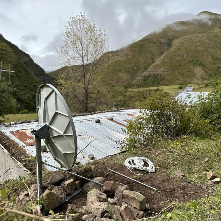 Los cuatro salieron presurosos hacia el puesto sanitario, con ansias de cambiar la historia. Herramientas en mano, armaron la estructura que sostendría la antena. Un intrincado fierrerío tomaba forma y la antena estaba en pie dos horas después. La parte más complicada de la instalación comenzaba: la orientación en busca de hacer contacto con el satélite. La geografía del terreno, rodeada de montañas sembraba en el equipo una duda silenciosa, pero creciente.